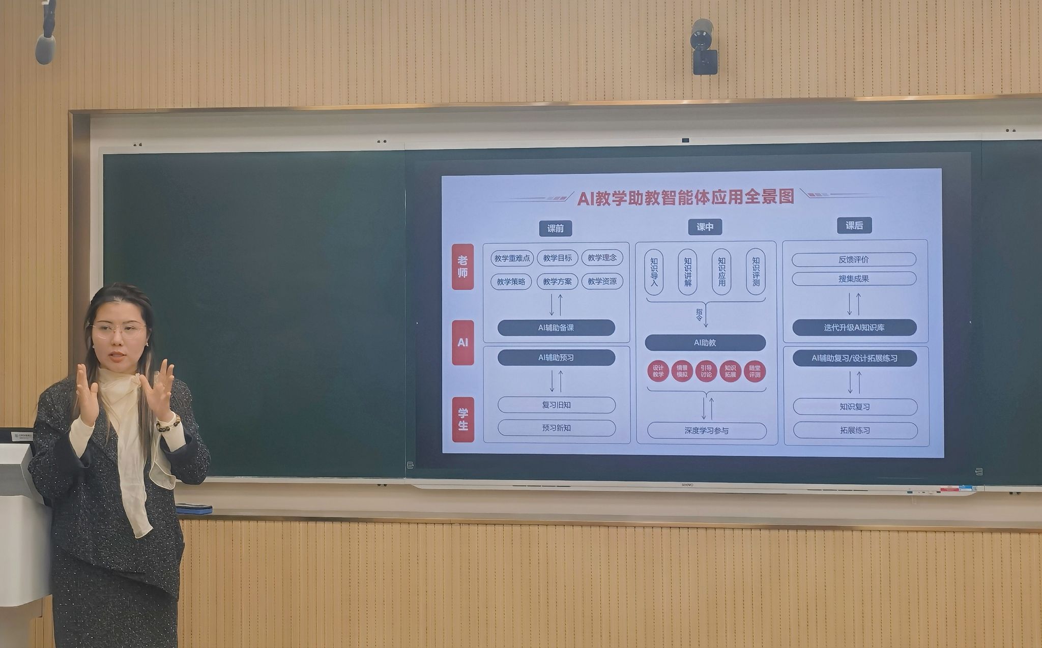 举办了“产教融合与AI赋能,推动一流课程创新实践”教学工作坊。此次工作坊特邀武汉轻工大学跨境电子商务产业学院院长、国家级一流本科课程《跨境电子商务》负责人、秋叶集团AI独家讲师吕丹副教授担任主讲嘉宾,学院30余名教师参与了活动。