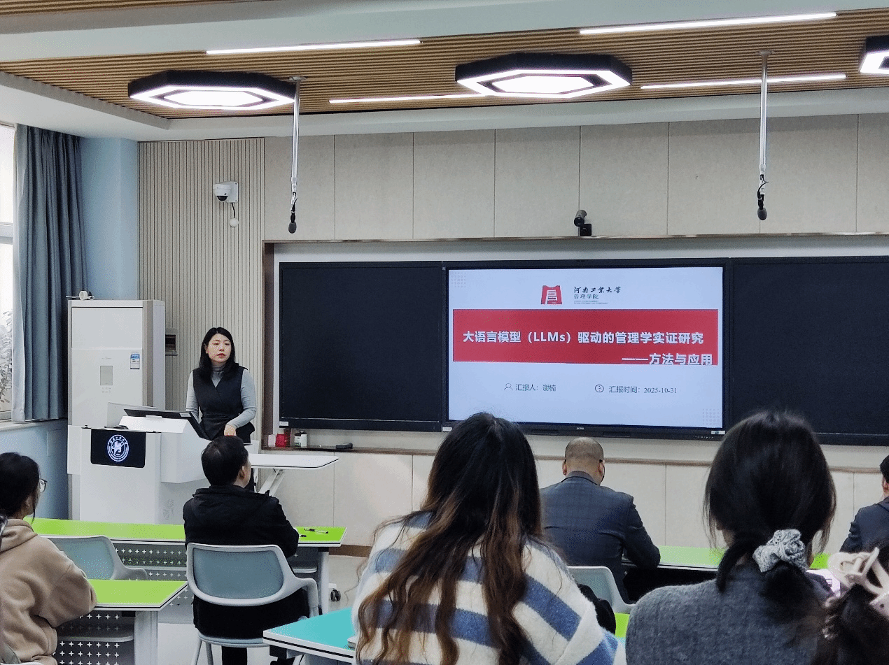随后,我院会计系谢楠博士作了题为“大语言模型驱动的管理学实证研究—方法与应用”的专题报告。报告聚焦如何利用大语言模型对海量非结构化文本数据进行深度分析。她以公司治理与资本市场研究为例,系统展示了如何运用基于BERT的文本分类模型挖掘投资者互动文本中的管理洞见,为师生提供了前沿的研究视角与方法指导。