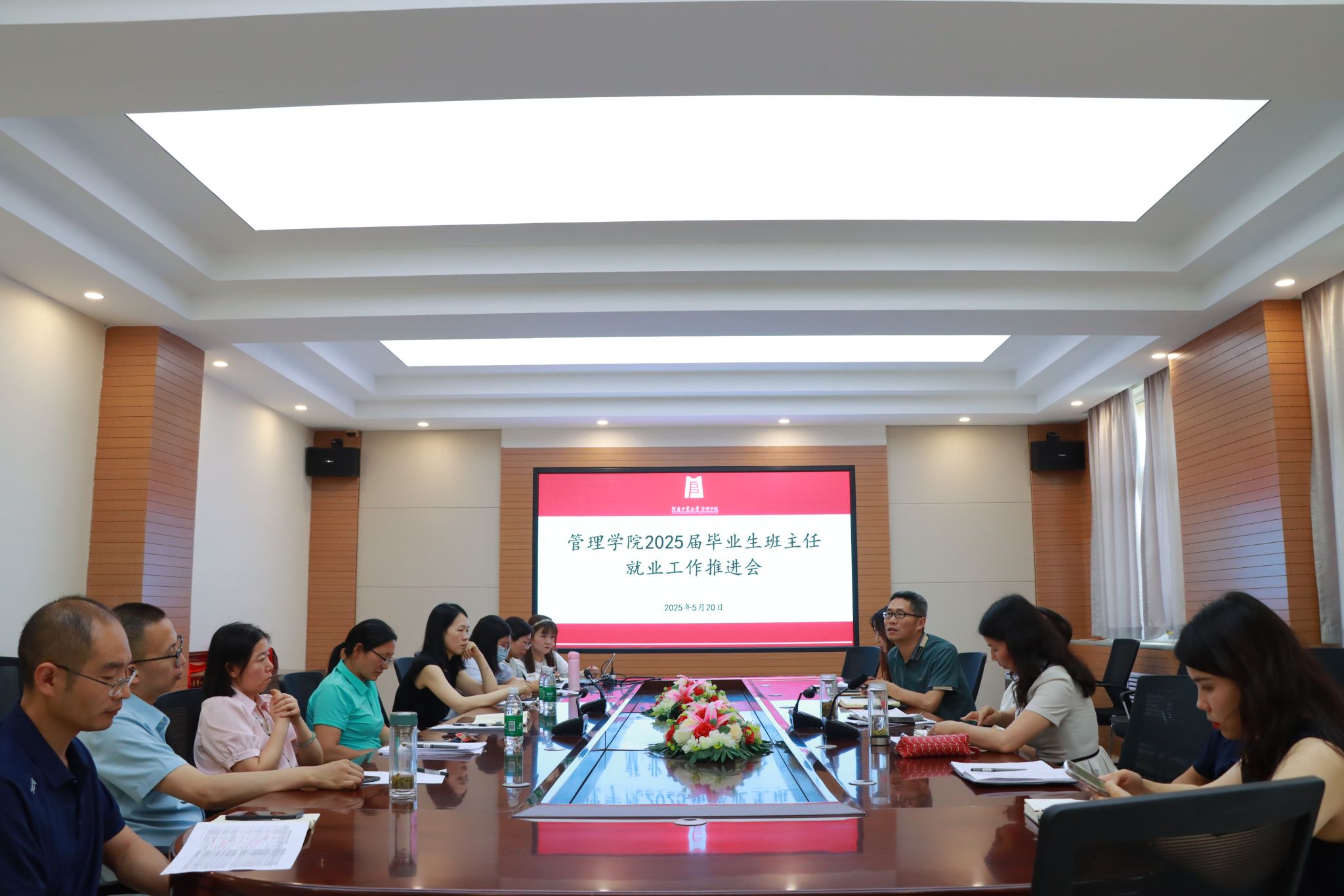 在3558会议室召开2025届毕业生班主任就业工作推进会。学院党委书记李国仓、院长李凤廷,学工办主任、团委书记、毕业班辅导员以及全体毕业班班主任参加了此次会议。会议由学院党委副书记曹启娥主持。