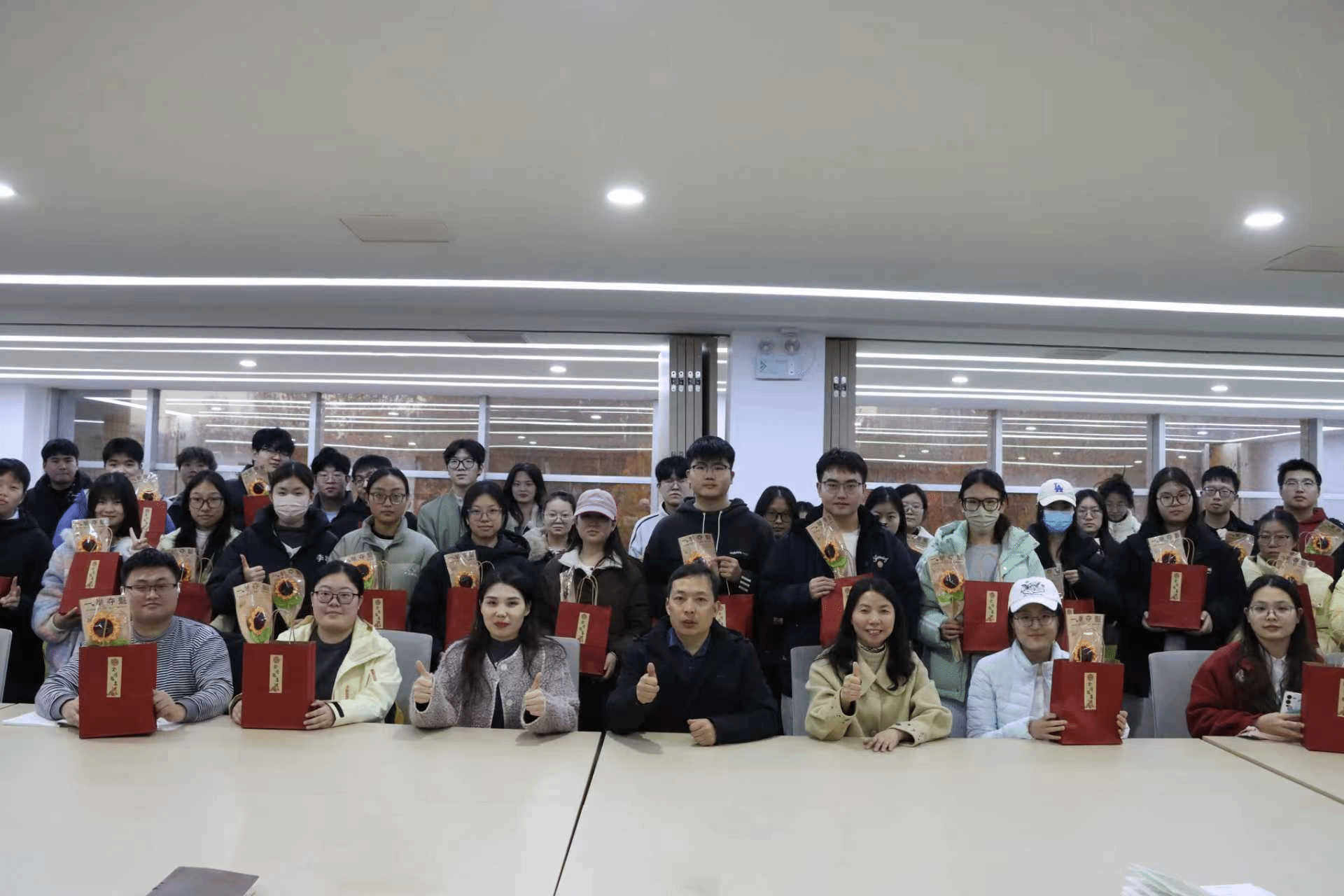 随后,与会领导为现场考研学生代表逐一送上这份满载心意的考研礼包,将学院的关怀切实传递到学子手中。