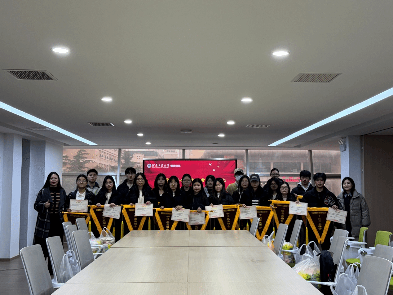 在德园一站式社区三楼举行了颁奖仪式。仪式上,学工办主任王风云老师及各年级辅导员代表肖雪川老师为获奖宿舍颁发了锦旗、荣誉证书及实用奖品,并对他们展现出的良好风貌与集体精神予以表彰。