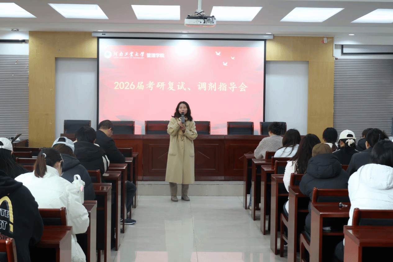 在3543会议室召开2026届考研复试调剂动员指导会。学院党委副书记曹启娥、副院长穆庆榜出席会议并进行动员指导,学院考研初试过线学生全体参会。会议由2026届毕业生辅导员郑媛媛主持。